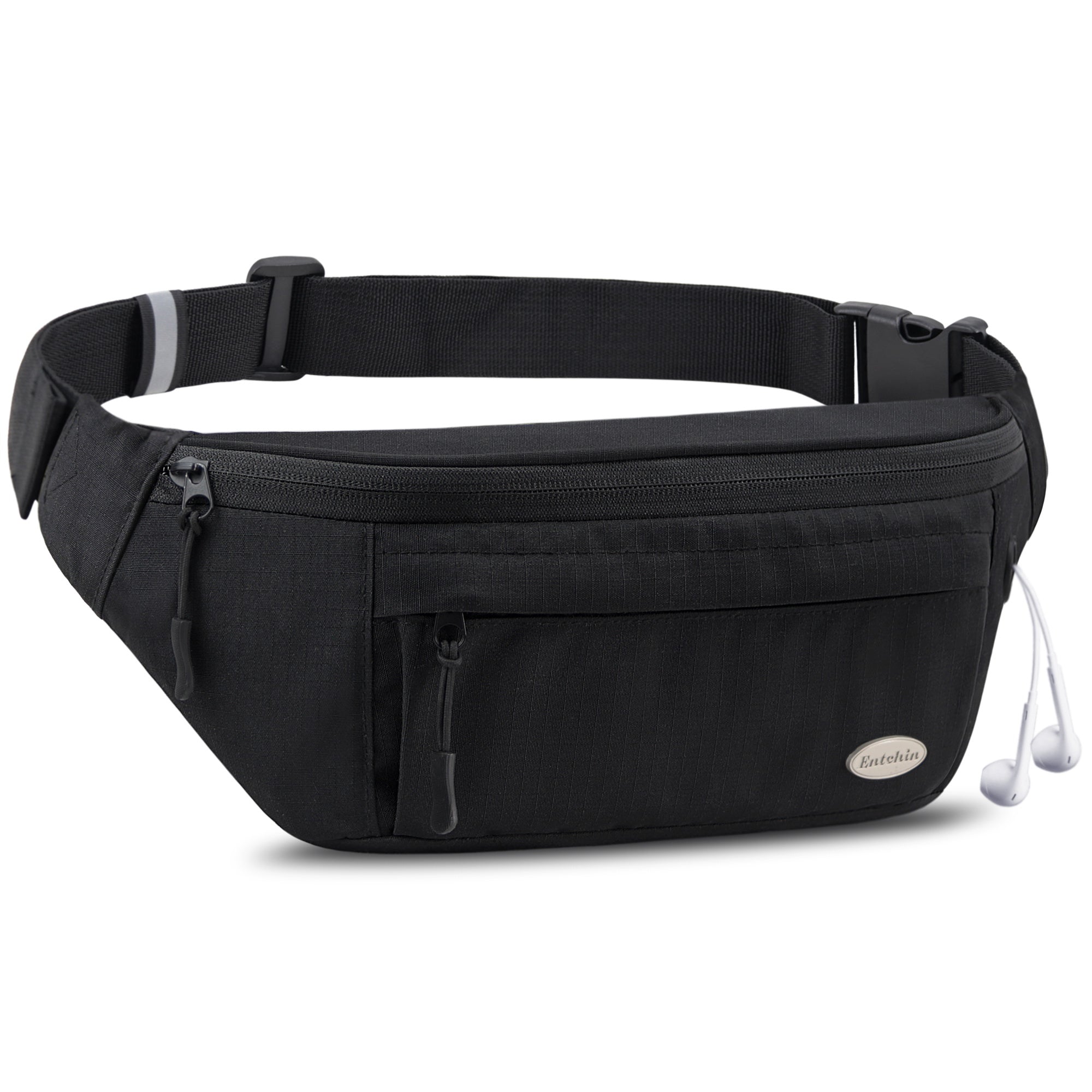 【Large Capacity with Easy Organized】Entchin Large Fanny Pack size: 15.7x 2.6 x6.1"(LxWxH). There are 4 zipper pockets on the fanny packs for men. You can carry all size of phone, wallet, Keys, passport, Cash, Cards, water bottle, sunglasses, notebook and other essentials.